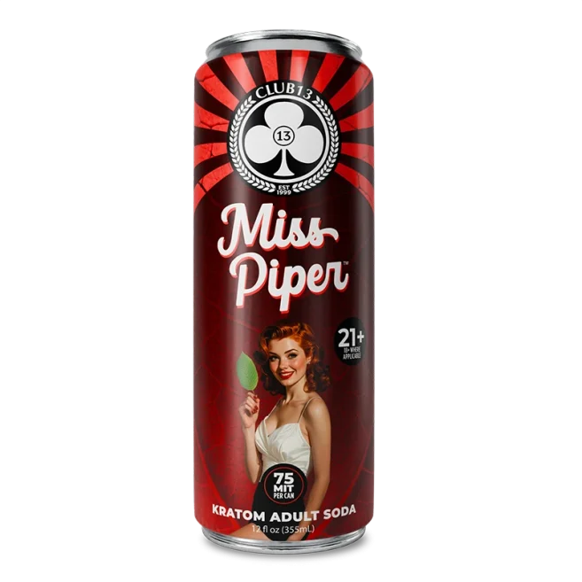 Miss Piper is a kratom adult soda that delivers 75mg Mitragynine and 40mg caffeine in every 12oz can. A smooth, uplifting experience that keeps you sharp, social, and feeling good.